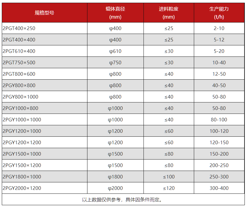 2PGY800x800 進料粒度≤40(mm) 出料粒度≤3 (mm) 生產能力40-50(t/h)